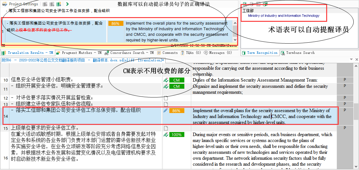 譯文質(zhì)量忽高忽低是翻譯公司和客戶最擔心的事情。譯文質(zhì)量的好壞取決于譯員水平高低和專業(yè)背景,而高水平、精通某個行業(yè)的譯員永遠是稀缺資源。翻譯數(shù)據(jù)庫又稱翻譯記憶庫(Translation Memory簡稱TM),當一個高水平、懂專業(yè)的譯員的譯文被TM記憶并存儲下來后,等于TM為該客戶的翻譯內(nèi)容創(chuàng)建了翻譯標準。當任何譯員、任何時間再次翻譯該客戶的文檔時,TM會自動提示譯員正確的譯法,從而確保譯文始終如一地精準和專業(yè)。對于海量文檔,如果只靠人工譯審,不僅需要耗費大量的時間和精力,很有可能會遺漏一些問題。體基利的譯審流程采取的是人機結(jié)合的方式。首先,體基利會使用專門的校對工具,對文件的硬傷,如譯文的統(tǒng)一性、數(shù)字的正確性等問題進行秒殺,從而使譯文的精準和規(guī)范率達到100%。其次,由專職的譯審人員就語言的通順和準確性進行二次校對,實現(xiàn)對譯文質(zhì)量的全控制。
